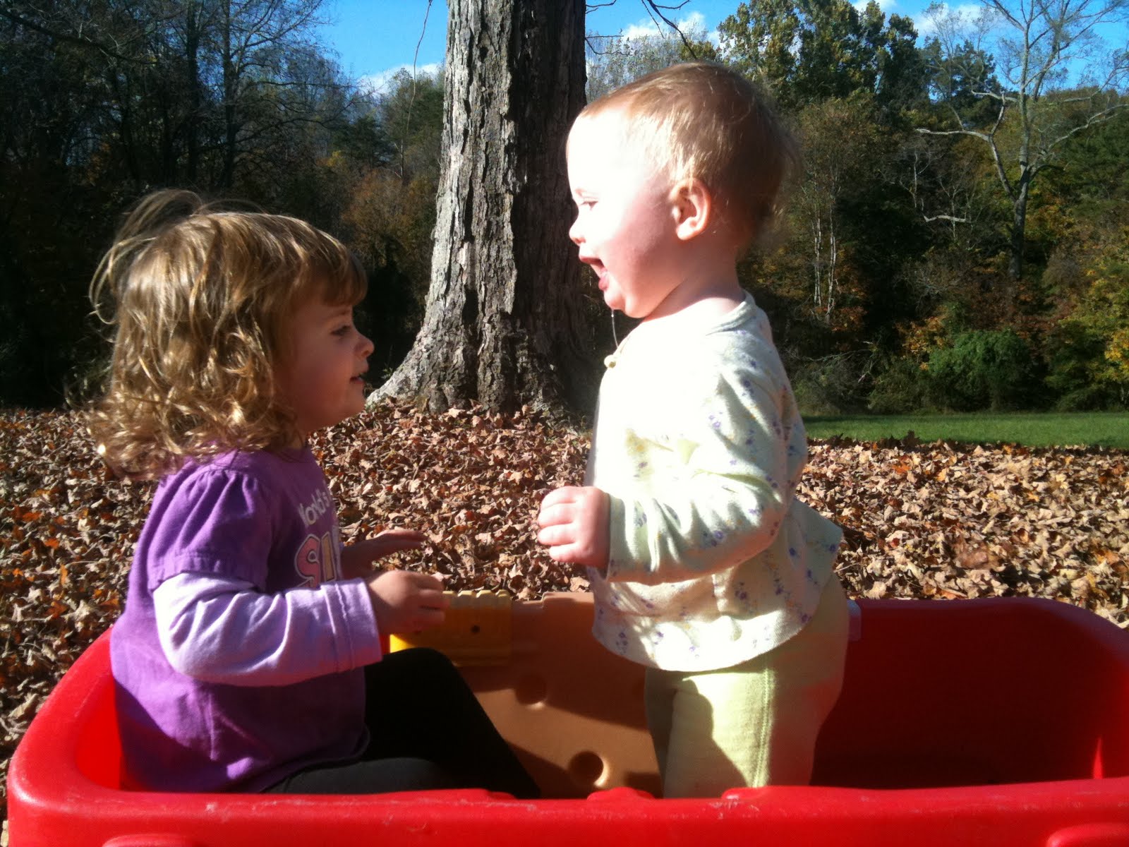 The thing I like the best won't even go away when winter comes. The leaves are nice, the pears are yummy, the swing is fun, but my absolute favorite is my sister, Erin. She is always there. She laughs at all my jokes, even when Mommy and Daddy don't get them. She even makes me laugh when things get a little boring.